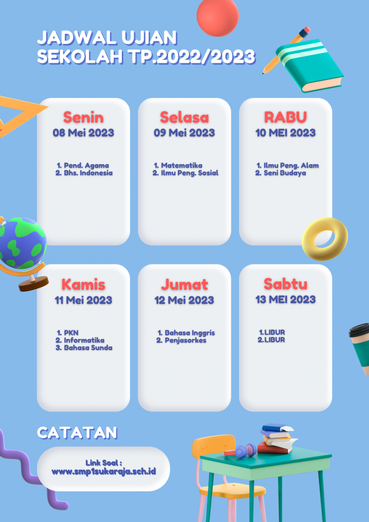 Pelaksanaan Ujian Sekolah dilaksanakan secara Daring pada tanggal 08 Mei 2023. Sesuai Jadwal yang sudah ditentukan Untuk Link soal, silahkan klik tanda panah pada Tab US lalu pilih Mata Pelajaran nya.